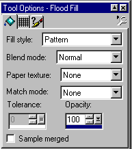 Now, create a new layer. Go to layers, new rastor layer. Unless, we mention a tool, or a specific location, look at the top of your programs in the options bar. Go to your TOOL bar, and select flood fill. Change the settings to the following: