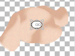 Ok, on with the nose. Change your color to #4b0800. Go to your preset tools, same settings except check vectors. Yes, just a little vector noding here too. Make sure your working on the top layer. Draw an oval then go to vector object selection. Again, go to the bottom node. Right click on it to get your node edits, then click on symmetric, then cusp. Draw both arrows into the center, pulling them up slightly. The next image will show you how they should look. Then rotate your image same as the eye, using the circular arrow. Then go to your layer palette, and convert to rastor.