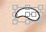 Go to your layer palette, get your preset shapes tool. Change the settings as: shape ellipse, stroked and filled, line width 1, antialias and vector checked. Change your foreground to black, and your background to white. We are now going to make an eye and create the first vector of this tutorial. draw an oval on the face as following: