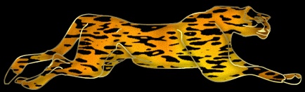 Level of difficulty: Easy and fun! Now this tutorial does require two filters. I can think of two great sources to retreive the pool shadows filter, one, Filter Factory A, and the other Gregs Filters. These are both filters I use often in creating different effects. Mura Meisters Filter, called clouds is superb. It has a selection of settings that I haven't seen anywhere else. It creates clouds, silk, skins and so much more. Also included in the zip is an outline I created and painted. I drew it from an ornament I have at home. I made it into a gold outline and saved it as a psp file. Go here and download Gregs filters volume IIFor the Pool shadow or use Filter Factory A's pool shadow..this one seems to work better.. For only the outline, Download here Go to Mura Meister's Site to download the Clouds 2.2 filter Hope you enjoy this tutorial, have fun, and please show me what you were able to do with it! Lets Begin: First make certain you have these filters in their proper files, including the windows file required for most filters to work. Open your PSP program, and open the outline psp file I included in the zip called: cheetahoutline.psp Take your magic wand tool change the tolerance to 40. This helps pick up more space inside the outline. Feather 0. Click inside the body, holding down the shift key, click every part of the body except the end of the tail, and the pads on the feet. If required, use your zoom lense tool to enlarge your picture to view all of the areas. Check under the chin, the top of the paws, the back hind leg part, the hind leg upper thigh. Once you have everything selected, go to selections modify and expand your selection by 2 pixels Now go to your layer palette, right click on this layer, create a new layer then move this new layer under the outline layer. Now you can make this guy into a black panther, or a leopard. The facial features may not be exact but close enough. Below under the lined Italic name you will find a skin, choose the one you like best. The panther is on the following page, if your going to do the panther go now to page two. ------------------------------------------------------------------------- The Leopard