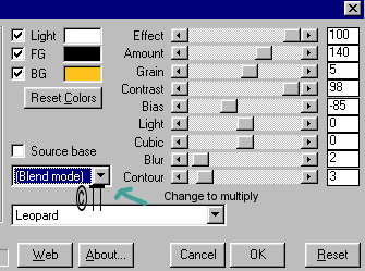 Apply.Then go to Mura Meisters cloud filter. Change the settings to Leopard and the blend mode to multiply.