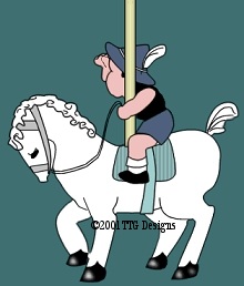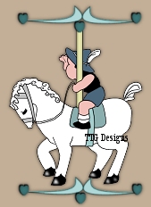 Turn off your background layer, layer 1 and merge visable. Edit empty clipboard, edit empty command history. Now you have two choices. If you would like to save this without a background, I would suggest resizing. Image resize percentage of original, maintaining aspect ratio, checked, resize all layers unchecked, resize by 50%. File open mgrdeco.psp. This is greyed so that you may colour it to your choice. Use color, colorize. Image resize it by 70%, same settings. Then edit copy, edit paste it as a new layer and move it to the top of the pole. Duplicate and add another below the horse.