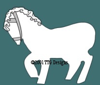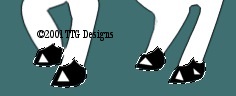 Select none. Now go to the top layer and add a new layer called hoofs, DO NOT DESELECT. Make certain your fill colour is black. Go to selections, load from disk, mgrhoofs.sel. Flood fill with the black twice.You may need to fill each hoof seperately. Add a new layer, you can name it hoof highlight. Change your fill colour to white. Now using your draw tool, point to point, fill instead of stroke, draw triangles on each hoof as following. Start at the top, draw directly down, then over to the right and back up to the starting square.