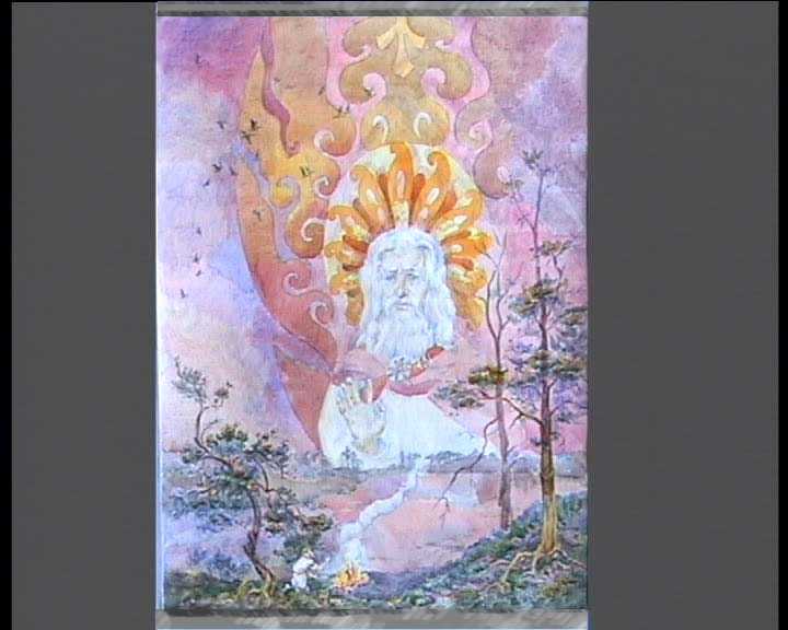 Сперва я поместил их слева. Однако, известно, что движение зрительно воспринимается происходящим слева направо (по крайней мере, в европейской культуре – может быть, вследствие традиции располагать таким образом слова в текстах). А, если Велес с Бурей Ягой поместятся с левой стороны, то срединный Даждьбог окажется с правой стороны от них, и пропадет эффект его движения.