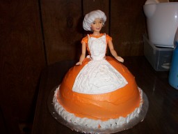 ![]() Doll Cake This cake was made in a huge glass measuring cup..I don't have a wonder mold pan. I did use a doll pick. With the exception of her hat everything else was done in whipped icing. |