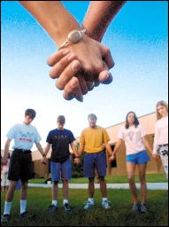 Have you ever driven by a school around 7:30am on a Wednesday morning in September and seen a group of kids crowded around the flag pole? Did you know they were praying…..exercising their religious rights and praying for their school and classmates around the mainstay American symbol of freedom…their flagpole. Tomorrow is See You At the Pole 2006. Christian school kids in every city in the US are encouraged to get together to pray around their school's flagpole. It is an awesome thing to see, if you take the time to drive by your local school tomorrow around 7:30am. Last year, as a leader in our youth ministry, I decided to take pictures of the kids as they gathered around the poles at our high school and our middle/elementary school. I knew the kids from our youth group were planning to be there…but when I drove up to each of the schools, I saw a large crowd on each campus. Word had spread and there were a lot more people there than I thought there would be. Teens are eager for ways to show their faith. Unfortunately, there are always people who come out to heckle and protest each year at different schools.