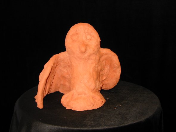 This is an owl sculpture i did for ceramics class. Its a little under 12" high. Eventually when I'm feeling not so lazy, I'm going to glaze it.