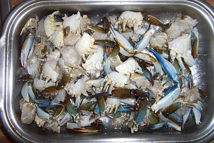 photo is of our fresh blue crabs, prepared to be cooked,that we caught in the