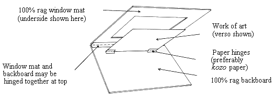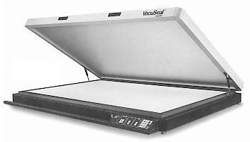 Depending on the type of artwork you are framing, your piece may be drymounted. This process uses a heat activated vacum press (see left) to adhere your artwork to a foam centered board to prevent rippling. Your artwork may be hinged to attach your artwork.
