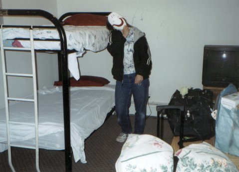 And these are the other beds we could have slept in, but they were wire springs ONLY. Very uncomfortable. And there is our TV, which actually got cable. And there is me again doing something really strange...