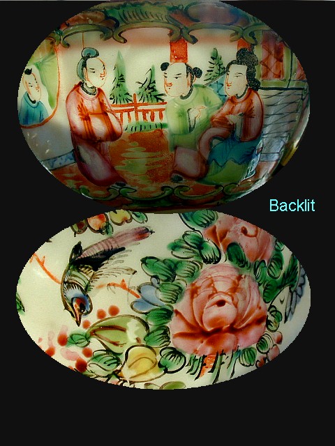 A lovely Chinese export rose medallion cup & saucer of very are form... Cup has 6 gently lobed sides with further 12 "fluted" panels. The conforming saucer has 5 lobes, each of which has 3 flutes & a "dimple". Very thin potting, see the backlit detail. And the hand painting quality is high, as you can see the enlarged pic is considerably larger than life. No marks whatsoever. Late 1800's to early 1900's.