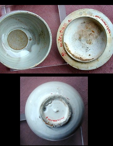 An early Northern Sung (11-12th c.) white glaze jar with cover. This is a shining white glaze over a greyish biscuit. A direct descendent of the earlier Tang white glaze from the northern kilns. The Sung ware were prized for the form and glaze. Both vessel rigidity and glaze control benefited from the higher temperatures (1200 Centigrade) of the kilns. The glaze & biscuit on this vessel show the same characteristics as T'su Chou ware. Note the glaze on the inside of the footrim and the clean scraped unglazed interior of the cup. Cover interior unglazed. The pic shows an old collection inventory mark in red and 2 Chinese characters in black. Not a recent import.