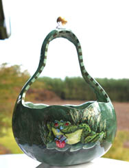 Welcome to our selection of Basket gourds. All gourds are one of a kind and for sale. Shipping: For US domestic or export shipping, please contact us. All gourds are hand varnished with a high gloss exterior varnish. Please excuse the shine.