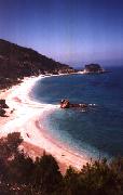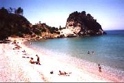 Potami is a picturesque, horseshoe shaped white sand beach with pure blue water.