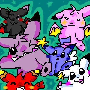 Another TreezeThundrikachu, the evolution after RaichuFlareion, Joltion, and Umbrion are out in the cold.Ri-llo looks up at the night sky...Watch out JigglypuffRun Ash, Run!Team RocketScooby Doo?MewtwoThe Chus stole Kirby's wands