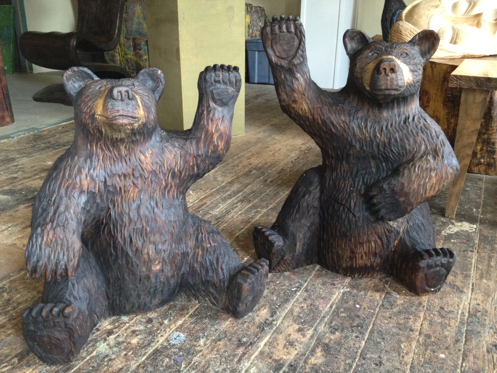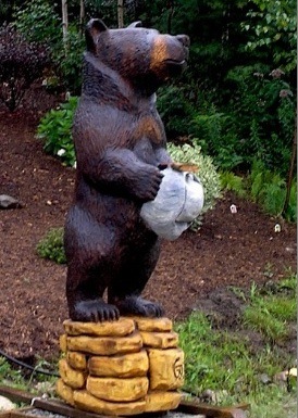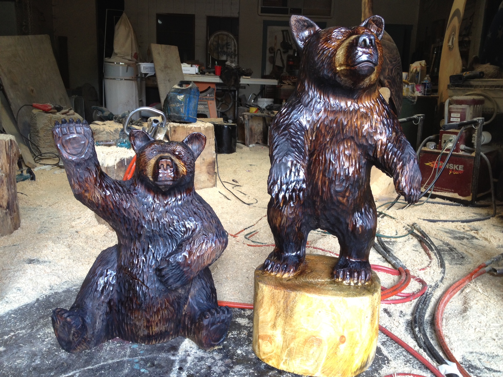 Over the last twenty years I have made thousands of chainsaw carved bears. The Bears pictured here are just few a examples. You can order you're own bear in any size you want. Just e-mail me at barrepinske@hotmail.com. or call 508-965-3211. Chainsaw carved bears start at $250.00 and go up from there. I make bears in all sizes and price ranges. I ship anywhere in the US and I do have experience in overseas freight. If you found this page from a web search please click on the little house to get to the home page to see all my work and more information.