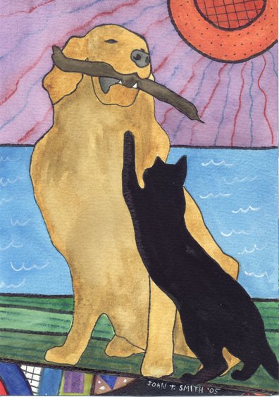 Fearless Shadow challenges a BIG dog! In her own reality, she thinks she's anybody's equal and that cats play with sticks... /B