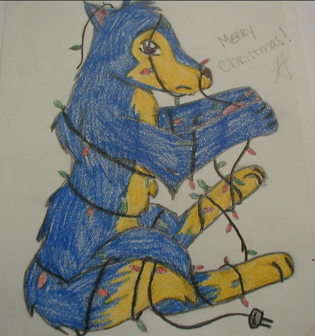 - Tehehe... A christmas Lupe! Tangled in christmas lights!