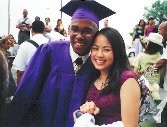 | look! mr. james came to the graduation! he looks spiffy, doesn't he? that's a good thing. well, lisa was in this picture, but she was kind of diving out of it as i took it so i guess that meant that she wanted to be cropped too. | |