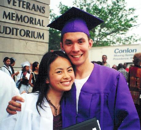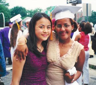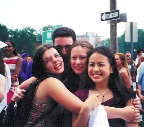 | christina was wearing a pretty dress and look! she lined up unknowingly with the plaque behind her. cool. she was also one of the few people that were allowed to decorate their caps and gowns. grr... latin people... hehehe. j/k. | |