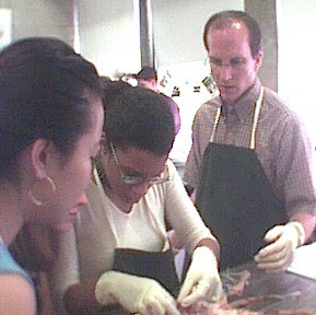 | diane and miriam pose while mari dissects. |