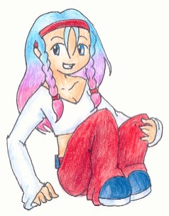 Army Bandana and top! Thats supposed to be a sort of crystal of light in her hand ^^; lol