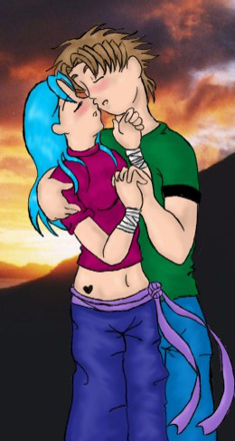 Sunset Cuddle I drew this in my agenda and then colored it in adobe. ^^ Though I snaged the background from the net ^^;