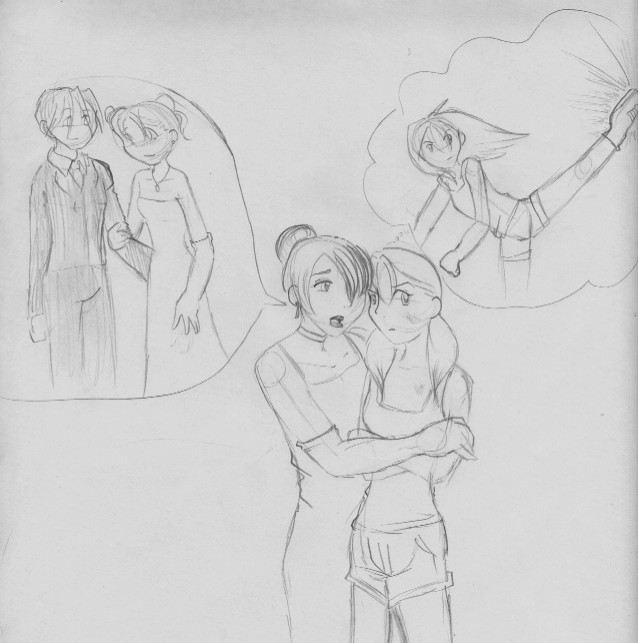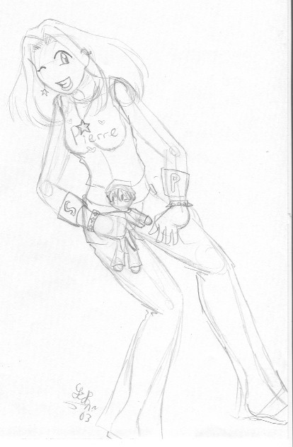 Random SketchThe idea behind this sketch is that the yougn girl is rebeling against her mother. Her mother wants her to be sweet,kind, sensitive and to marry a rich man. She on the other hand wants to be wild and free.