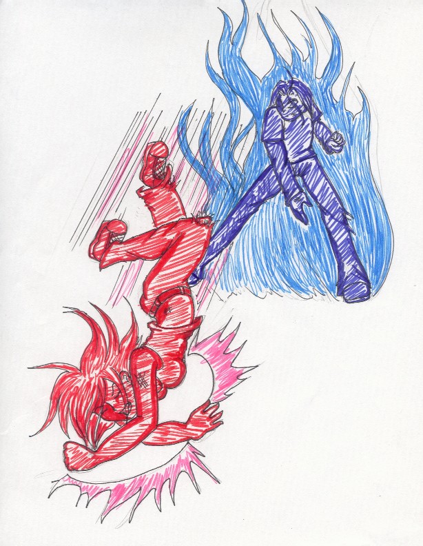 Don't askI copied the poses from my new How to draw manga book Illustrating battles. The coloring is just wack as I was goofin' around lol Jewels turned out awsome ^^ Though I used a dark marker for Number 17 and that messed him up x.x