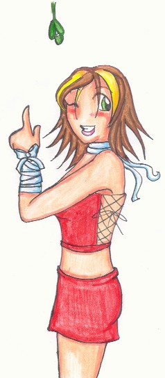 Xmass gift, Kay Kaychan under the mistletoe and looking at her 'kiss list' lol ^^