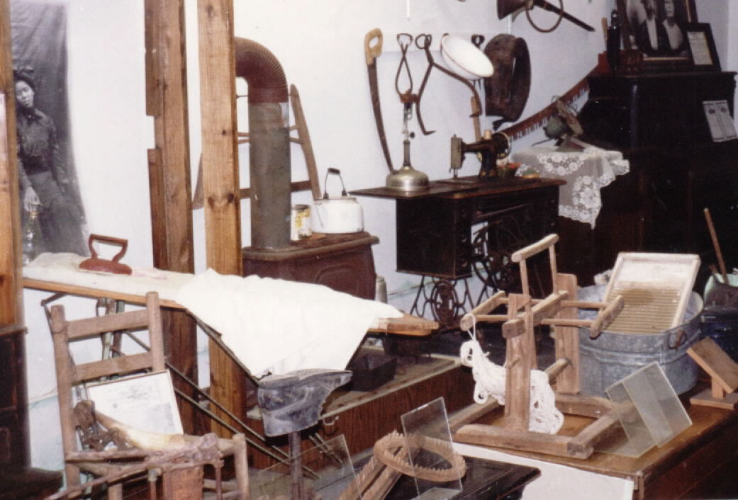 Clothes made on the sewing machine in the upper right hand corner, and washed on the rub board in the lower right hand corner.