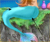 smudge around the bottom of her tail in dark...then change to lighten rgb and smudge the top of her tail...click on the right arm and smudge with darken rgb...under the elbow and up her inside arm....select none and with the tail again and smudge darken... smudge the waistline to blend with her skin...whew!!!hope you can understand that one......now you can merge all your layers and re name it background