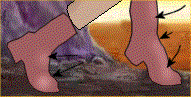 6)Add new layer...selections...load from disk...boot 1....flood fill #5B4C31...add new layer...flood fill black...selections....modify...contract by 1... delete...add new layer...selections..load from disk...boot 2...flood fill #5B4C31.... add new layer....flood fill...black...selections...contract by 1...delete... layers>merge...with the smudge tool set at ligtenRGB...size set at 20...smudge the boots.. shown here