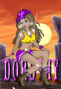 7)Add new layer...selections...load from disk...shorts...flood fill with #790691...... add new layer...flood fill, black...selections...modify...contract by 1... delete....new layer...selections...load from disk...shorts trim...flood fill #FF8DFF...add new layer...flood fill black...selections...modify...contract by 1... delete.....new layer...selections...load from disk...belt...flood fill#FCE01D... new layer...flood fill...black...selections...modify...contract by 1...delete.... add new layer...selections...load from disk...buckle...flood fill with a light grey.... add new layer...flood fill black...selections...modify...contract by 1...delete...selections...load from disk... shorts shadow...flood fill with black... layers>merge