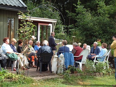 Haar keus viel op het schilderij van mevrouw Rustwijk. Na het openen bezocht de wethoudster alle schilders die op diverse locaties in het bos hun schilderijen hadden uitgestald.