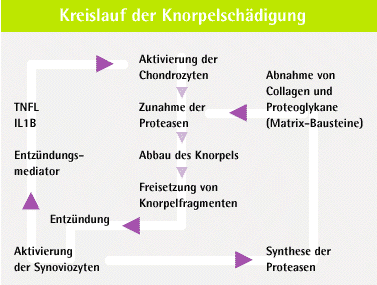 (Cytokine IL1B, TNFa) produziert, die aktivierend auf die Knorpelzellen