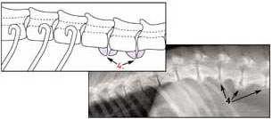Leiden. Man sieht bei mittleren und großen Rassen Spondylosen