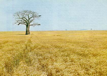 from the family Bombacaea.Also known as the Cream of Tartar tree or in Shona as "Mvuku" or "Mumungu" and in Sindebele as "Umkhomo" the magnificent Baobab grows to more than 15 metres in height and over 7 metres in girth. There was a particular Baobab by the Devuli River bridge which was hollow and inside which 40 people could shelter. Anybody who has tasted the seed of the Baobab fruit will never forget the sweet fizzy flavour which is similar to cream of tartar.