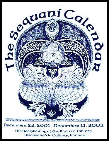 The Sequani Calendar is a translation of an ancient Celtic calendar. The calendar was believed to have been hidden by the Druids of the ancient tribe of the Sequani. Archeologists called the calendar, the Coligny Calendar because it was discovered near the town of Coligny, France; however, we have given it a new title in honor of the people who wrote it and in dedication to their goddess, Sequana.