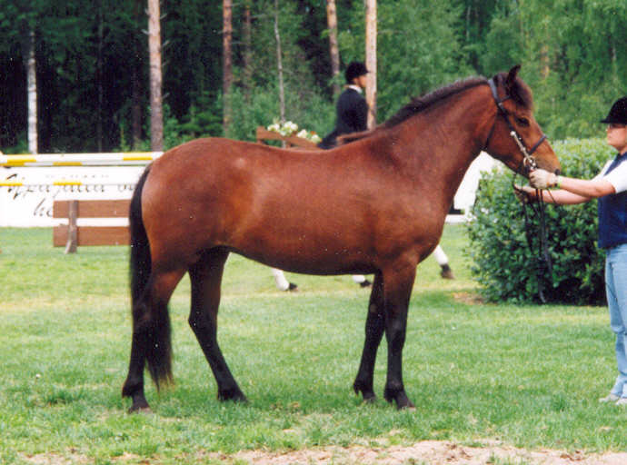 Ratsastaessa: se on myös ihan kiltti.Esteillä ei kuumene helposti.Kouluakin se taitaa ihan hyvin.Esteitä hyppää hienosti,mutta joskus ottaa siihen väliin pienen sipsutus askeleen kun ratsastaja luulee että se ponnistaa jo esteen yli.Laukan se nostaa hienosti,mutta jos laittaa ulkopohkeen liian taakse sieltä voi tulla pukkeja!:) Koska se ei tykkää oikein siitä.Sillä on todella tasaiset askeleet,ja siellä on todella helppo istua harjotusravissa.Ja laukka on todella pehmeä ja myös helppo istua.Maastossa se on rauhallinen,mutta kuuntelee aina tarkaan kaikki äänet mitä kuuluu.Jos joku ääni kuuluu takaata se voi luimistella ja vaikka potkaista varmuuden vuoksi taakse.Muitten hevosten kanssa se tuntee olonsa mukavemmaksi,eikä potki taakse taikka luimistele.Mutta voi silti kuunnella oikein tarkaan.Autotiellä se ei paljon välitä autoista jotka huristavat ohi.Mutta kun rekka menee ohi se voi säpsähtää.