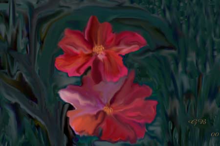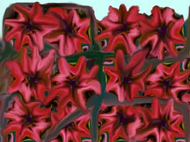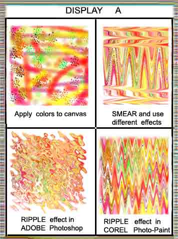 DISPLAY A SMEAR FLOWER I will show a couple of ways in which I draw Flowers 2- Use different effects and tools 3- RIPPLE effect 4- RIPPLE effect 3 and 4 show two RIPPLE EFFECTS to demostrate the same name being used by two major programs for two different effects. |