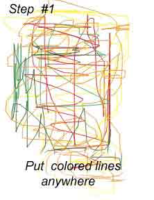 Step # 1 Put a few lines on a new page. I think it would have been better to have put darker colors and more lines maybe even covered up the page, But that is hind sight. |
