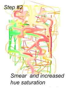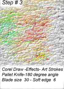 Step # 2 Smear the colors around. As you look at Step # 1 and 2 you loose all faith in my artistic ability, but there are tools and effects available that do the most marvelous things, things that I could never do by myself. |