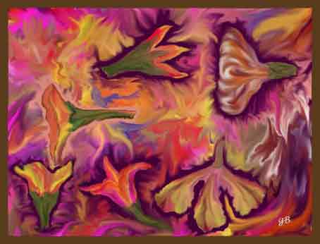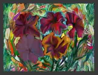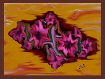 A CLOUD EFFECT was used on the background and the frame. To create a dark line around the flower, paint your background a dark color prior to using the CLOUD EFFECT. |