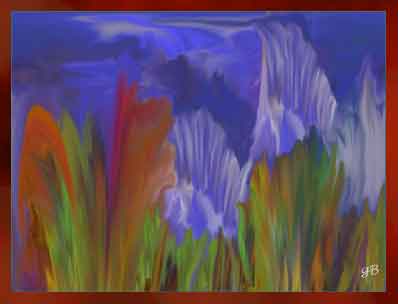 This image was created by CLONING areas of another "Field of Flowers". It is easy to see the CLOUD or SHADOW EFFECT on the field. The grass and flower stems in the foreground, and some trees in the background, were drawn in to complete this image. |