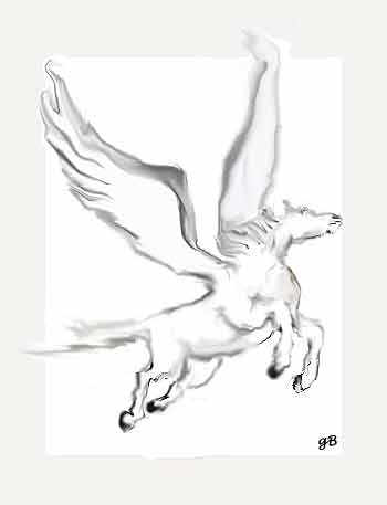 A little girl, who was raised on a farm and had been around horses all of her life, stood looking up at the horse with wings. Her mother was holding her hand and talking to some friends, not paying much attention to the drawings in this "Children's Art Gallery". As the group started to move on to the next drawing the little girl pulled on her mother's hand, refusing to move on. Her mother was oblivious to her daughters fascination with this drawing and gave another small tug on her daughter's hand. The little girl who was sure her mother had never seen anything like this turned and looked up at her mother and then turned back, to take a last look at the wonderful beast, pointing up at the drawing she informed her mother of her latest discovery Horse fly! Horse fly!