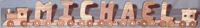 Name Trains are made from red oak. The letters are approximately 3 3/4 in. tall.