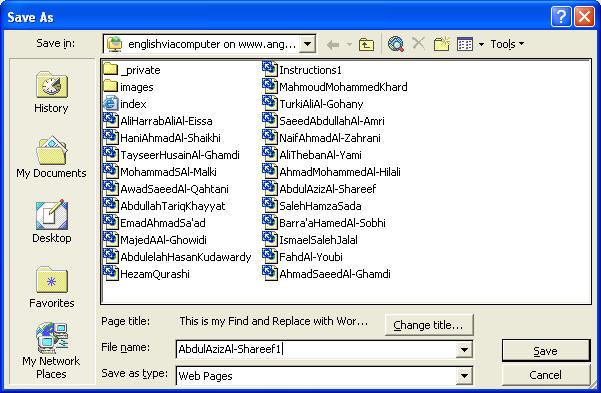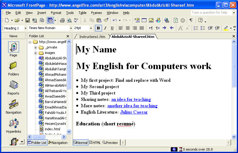 Remember: I have given you the password; so you could really do damage to the site. You must promise to work on your named home page and on nothing else in art3/englishviacomputer.