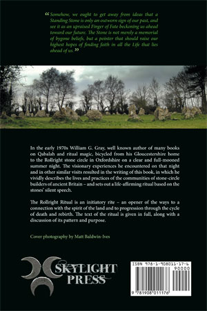 "Somehow, we ought to get away from ideas that a Standing Stone is only an outworn sign of our past, and see it as an upraised Finger of Fate beckoning us ahead toward our future. The Stone is not merely a memorial of bygone beliefs, but a pointer that should raise our highest hopes of finding faith in all the Life that lies ahead of us." In the early 1970s the redoubtable old occultist William G. Gray bicycled from his Gloucestershire home to the Rollright stone circle in Oxfordshire on a clear and full-mooned summer night. The visionary experiences he encountered on that night and in other similar visits resulted in the writing of this book, originally published by Helios Books in 1975 and now a classic among pagan and craft traditions. The text of the ritual is given in full, along with a discussion of its pattern and purpose. The Rollright Ritual is a powerful initiatory rite for attuning oneself to a personal and communal path of spiritual growth, presented here with an explanatory text and a discussion of the spiritual lives and practices of the stone circle builders of Great Britain. William G. Gray is a well established author of many books on Qabalah and ritual magic. He also worked with many practitioners of traditional witchcraft including Doreen Valiente, Pat Crowther and notably Robert Cochrane, in whose memory The Rollright Ritual was written. William G. Gray died in 1992. This edition of The Rollright Ritual is the complete and unabridged text from the 1975 Helios edition. It contains all the original photographs, plus two additional ones which were submitted for the original edition but not used. The original 1973 audio recording made to accompany the book, featuring the voices of William G. Gray and R.J. Stewart with powerfully evocative music, is also now available on CD from R.J. Stewart Books. |