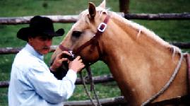 Rashid, author of Considering the Horse and A Good Horse Is Never a Bad Color, has worked with all types and breeds of horses and with all types and degrees of “horse problems” for close to thirty years. He has worked with horses that have problems easily resolved and others a bit more complicated. He has started countless horses and trained hundreds of humans in his gentle methods. He has even worked with his share of Mustangs. Probably over 500 horses in all. He grins as he tells that the biggest complaint he’s received about his training methods is that he is “too slow and too quiet”. All that recounted, his experience with Camino left him shaking his head and describing the Paso as “the most troubled horse I’ve ever worked with”. Despite that claim, Catherine eventually sat proudly atop a calm and relaxed Camino and later watched as Rashid slowly worked him under saddle in the round pen.